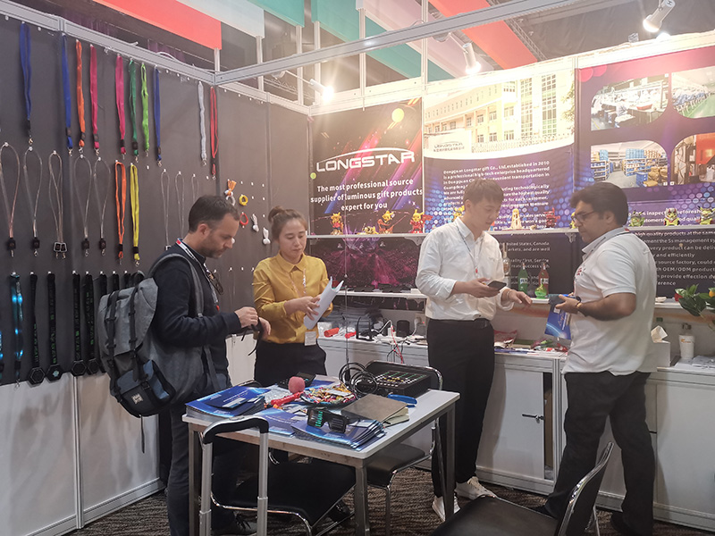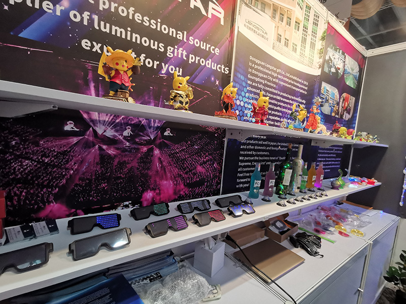 The theme of our Pavilion is gifts and crafts. The company mainly sells products: LED coasters, led bracelets, led shoelaces and other luminous products. These products can decorate the atmosphere and give you a different party.